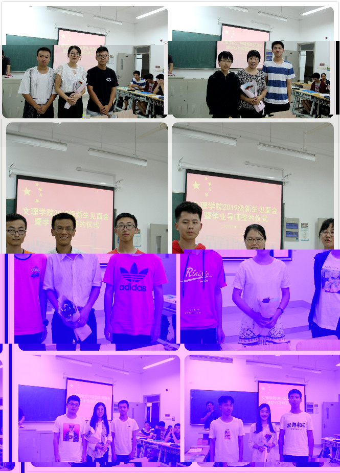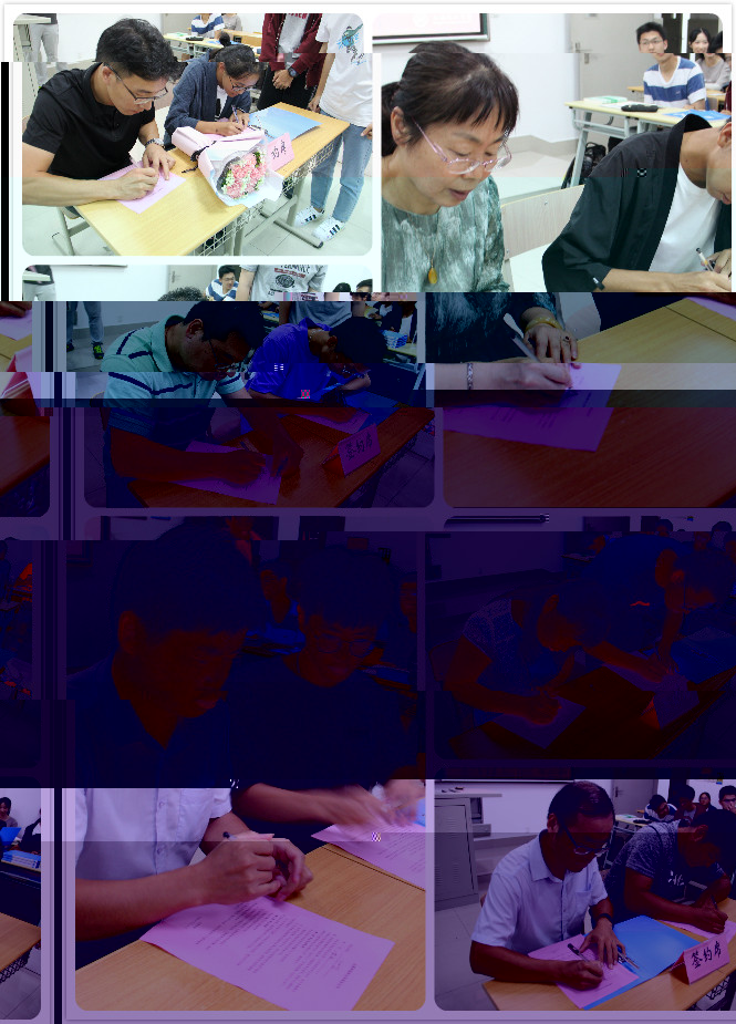 最後,進行了學生與學業導師的簽約儀式。儀式上,12名導師分别與自己所帶的2或3名學生進行了面對面簽約;恰逢35個教師節之際,新生們還為自己的學業導師獻花,表達了“尊師重道”的心意;簽約儀式強化了師生間關系,明确了雙方職責,加強了溝通交流與學業指導。
