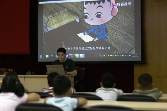 活動伊始,由小組成員王施菁放映講解“小蘿蔔頭”的故事“紅色曆史永留傳,愛國信仰更堅強”号召小朋友向“小蘿蔔頭”學習,困難面前,信念不搖;風雨面前,希望不熄,牢記苦難昨天,珍惜幸福今天,建設美好的明天。“紅色經典永傳唱,愛國歌聲更嘹亮”小組成員童勝哲領唱歌曲紅星閃閃,台下很多小朋友跟着輕輕唱和,溫柔的音符就如一束束閃爍的星光,照亮心房,點亮信仰。